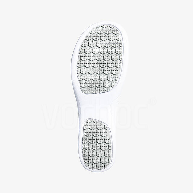 Podešev z EVA a gumy (NBR) s certifikovanou SRC protiskluzností poskytuje jistotu pohybu na suchých i mokrých površích – ideální pro nemocnice, laboratoře a potravinářské provozy.