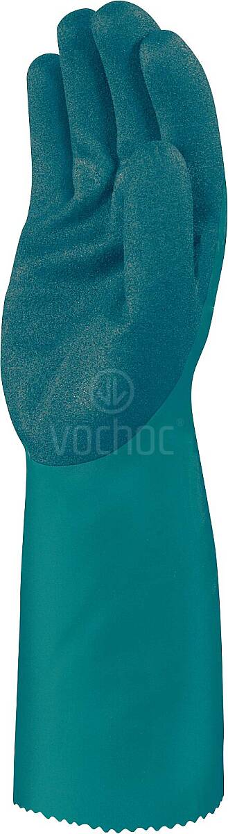 Pohodlné rukavice s chemickou ochranou určené pro dlouhodobou práci s uhlovodíky. Povlak z Aqua-Polymeru s texturovaným povrchem zajišťuje spolehlivou přilnavost i v náročném prostředí a bezpečnou manipulaci s předměty. Syntetická textilní podpora s hustotou úpletu 18 poskytuje vysoký komfort při nošení, zatímco tloušťka 1,15 mm zvyšuje odolnost. Délka 340 mm navíc chrání nejen ruce, ale i část předloktí.