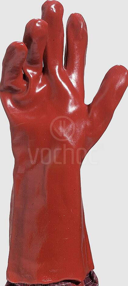 Rukavice s chemickou ochranou chránící celé předloktí před rozstřiky oleje a uhlovodíky při dlouhodobém používání.