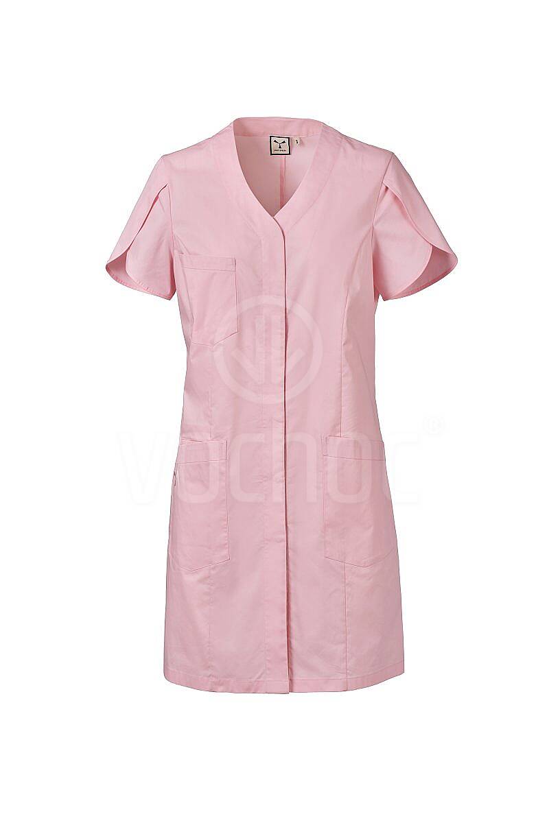Stylový a pohodlný dámský plášť s krátkým rukávem v moderním tulipánovém střihu a s elegantním výstřihem do V. Je vyroben z kvalitní směsi bavlněného popelínu, polyesteru a vlákna Lycra® T400®, která zajišťuje vynikající elasticitu, tvarovou stálost a vysokou prodyšnost pro maximální komfort během celého dne.