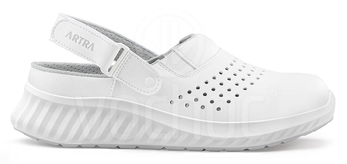 Kvalitní bílý nazouvák s překlápěcím páskem okolo paty. Nová podešev obuvi RAPTOR PU.2D je extrémně lehká a vysoce převyšuje požadavky na protiskluznost SRC. Obuv má textilní podšívku CLIMAX 3D, ve které skvěle cirkuluje vzduch.