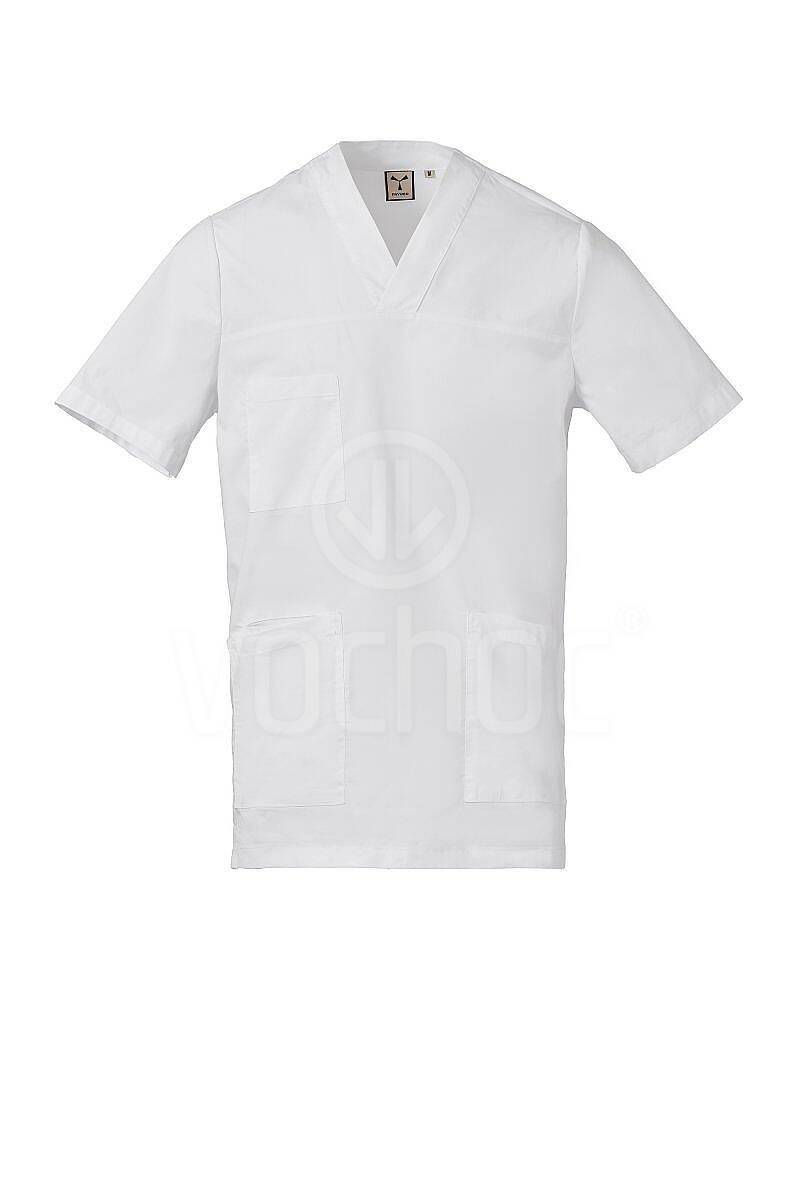 Praktická a pohodlná pánská halena s krátkým rukávem a výstřihem do V je vyrobena z kvalitní směsi bavlněného popelínu, polyesteru a vlákna Lycra® T400®. Materiál vyniká výbornou elasticitou, tvarovou stálostí a vysokou prodyšností, což zajišťuje komfort i při náročném pracovním dni.