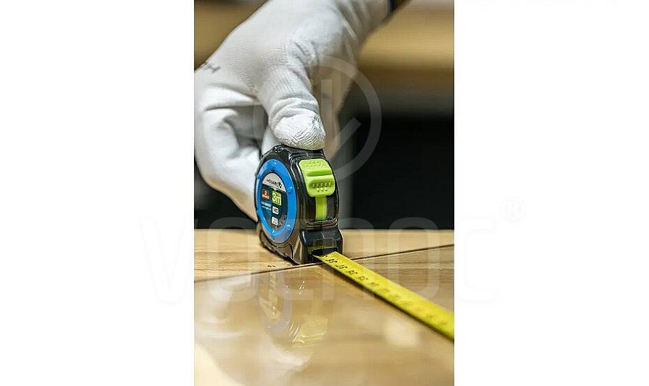Kompaktní svinovací metr pro renovační a dokončovací práce na stavbě, nebo v každé domácnosti. Metr má žlutou pásku s černým potiskem čímž zajišťuje čitelnost měření a mechanismus automatického navíjení pásky. Dvě brzdová tlačítka umožňují pásku zablokovat kdykoliv.