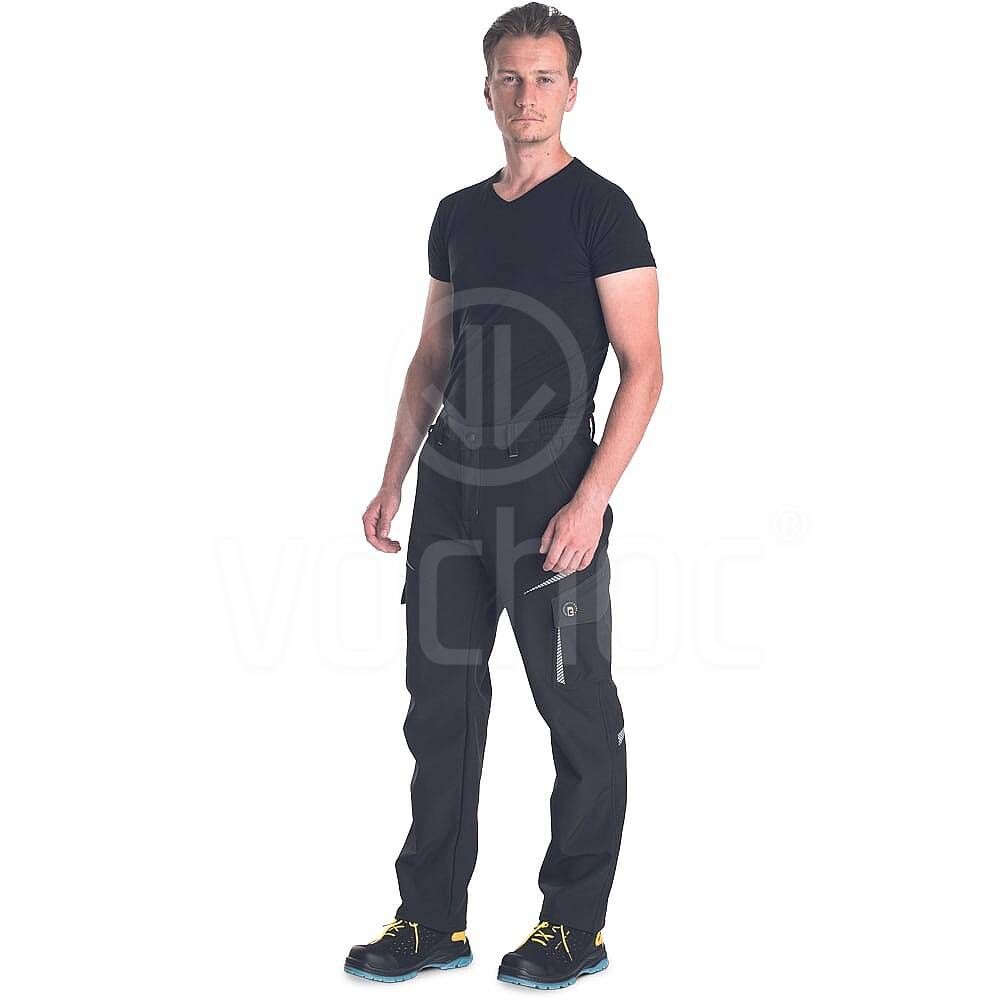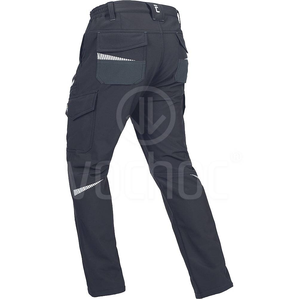 Zimní softshellové zateplené kalhoty s elastickým pasem a reflexní prvky v oblasti kolen a na zadní straně nohavic. Kalhoty mají dvě boční kapsy, dvě zadní kapsy s klopami na suchý zip a dvě stehenní kapsy s klopou na suchý zip. Prodloužená délka nohavice je 5 cm.